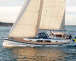 Simon bor året rundt i en Sweden Yachts 34 - månedlig havneleje på 1.730 kr.
