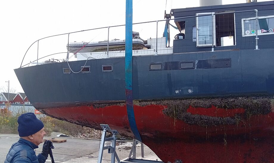Fra bådebygger og altmuligmand til kaptajn i modvind i Vallensbæk Havn. Her er Anders Steens ærlige beretning om at sejle og løfte en 23,33 tons cementbåd på land – og om det, der næsten gik galt.