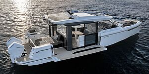 Det er igen Atlanterhavs-designeren Marc Lomard som slår linjerne til en RM-båd. Denne gang til 39 fods RM 1180, der har negativt spring. Fribordet er kun højt hvor der skal være plads om læ. Minbaad.dk har før testet RM-bådene, der er kendt for et moderne design.