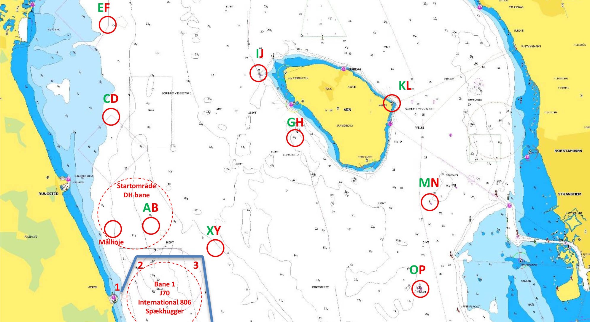 Vedbæk Sejlklub har mulighed for at afkorte eller ændre banerne, hvis vejret kræver det.