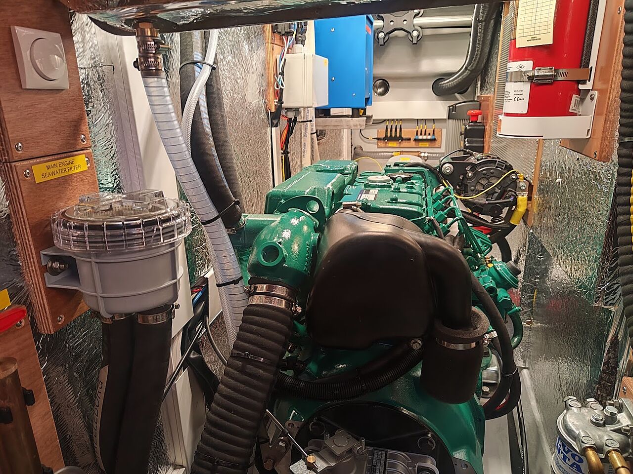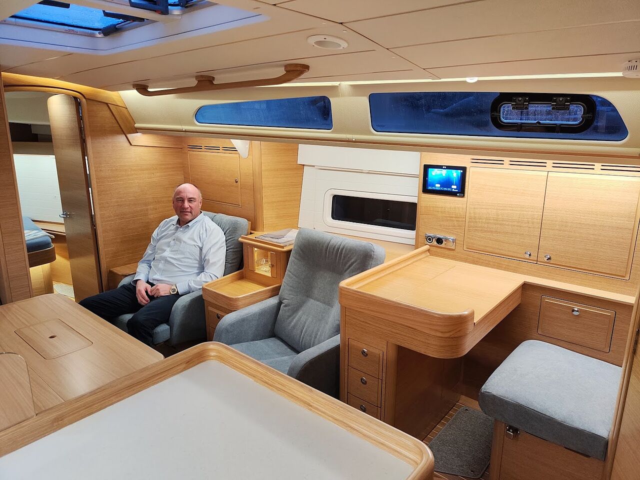 Kahytten er usædvanligt lys takket være mange koøjer og luger, og bredden på 3,75 meter giver en markant rummelighed. Ejere kan vælge mellem klassisk khaya-mahogni eller lyst egetræ. Layoutet rummer to kabiner, hvor forkahytten kan fås enten med ø-køje eller traditionel V-køje.