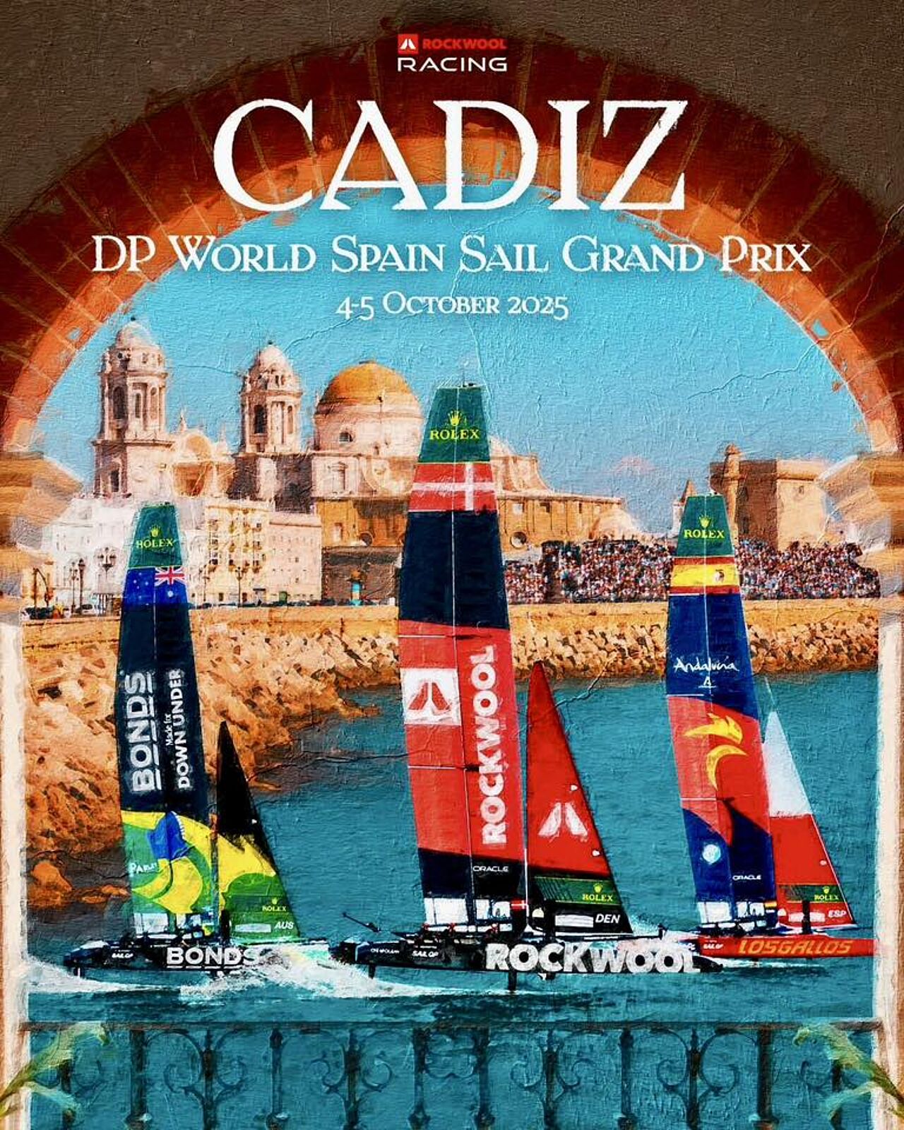 ROCKWOOL-holdet sejler i Cádiz med firemandsbesætning, inkl. den dobbelte olympiske mester Kahena Kunze. Den lettere opsætning – kombineret med mere fortrolighed med SailGP’s nye T-foils – var tydelig i topfart og højde på de afgørende ben.