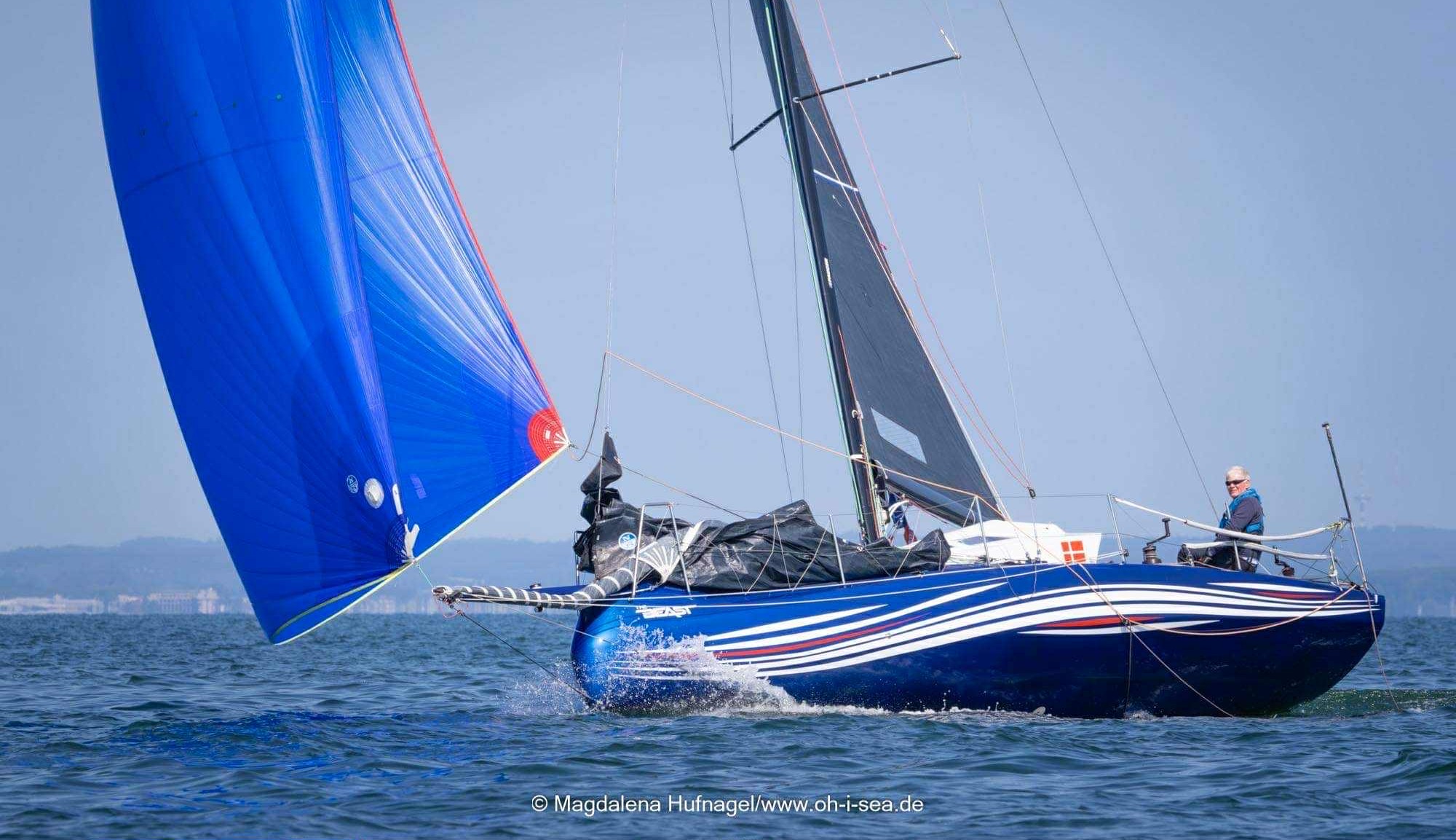 Ved broen lå han side om side med de to stærke tyske Dehler 30’ere Play Harder (Max Gurgel) og Powerplay (Bjarne Lorenzen), mens Jynx, en Esse 850, førte small-klassen.