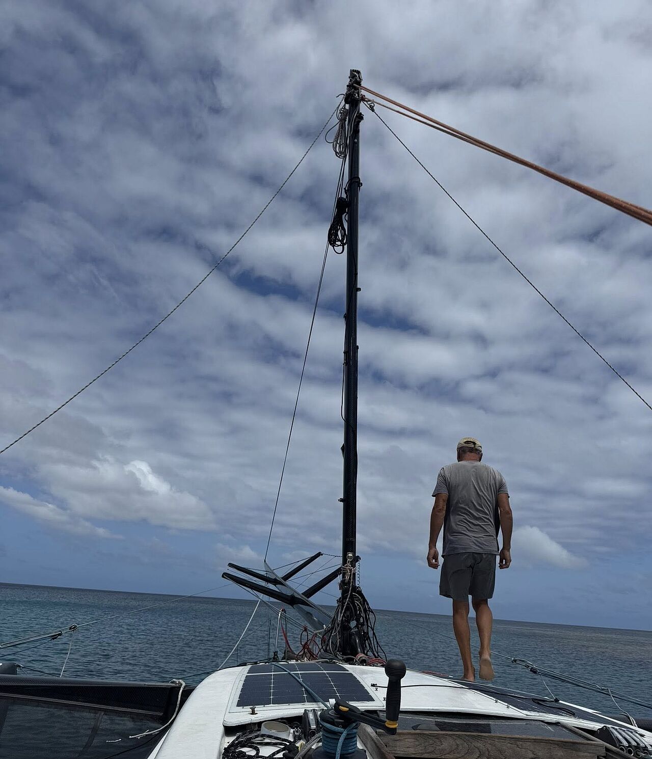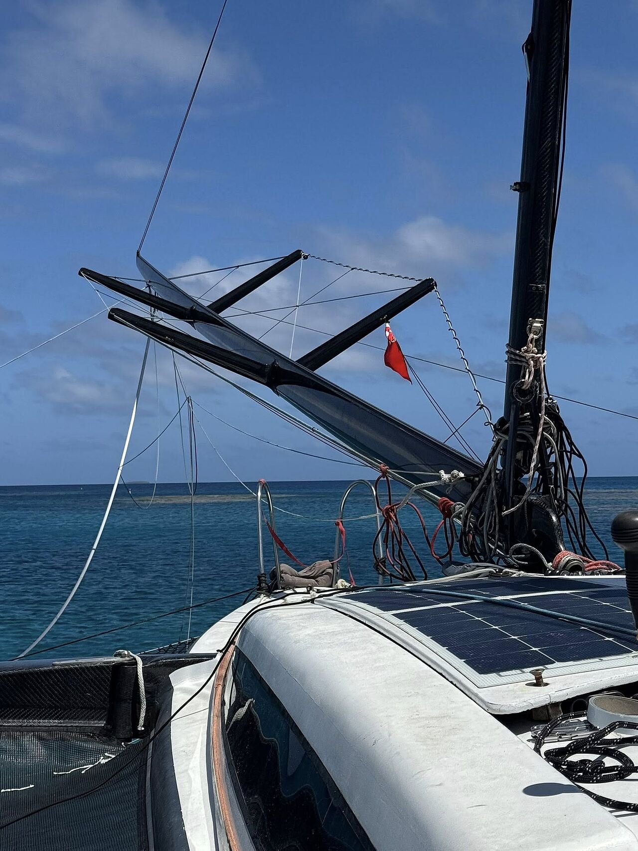Trimaran-sejleren fra Sydfyn, Jan Andersen og hustruen Annette, mistede kulfibermasten 1.200 sømil fra New Zealand – men fik den selv rejst igen med reb, SUP og en teakpind på Black Marlin 33.