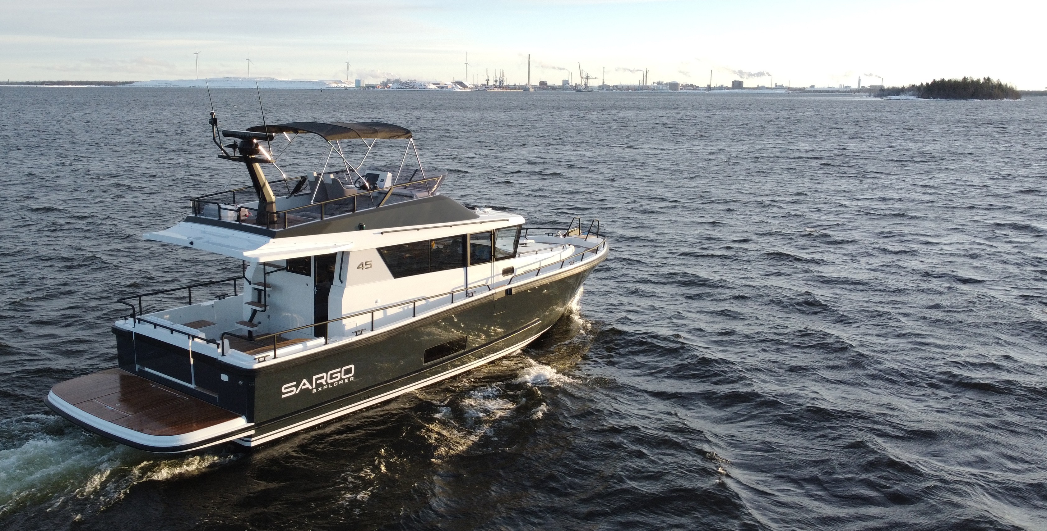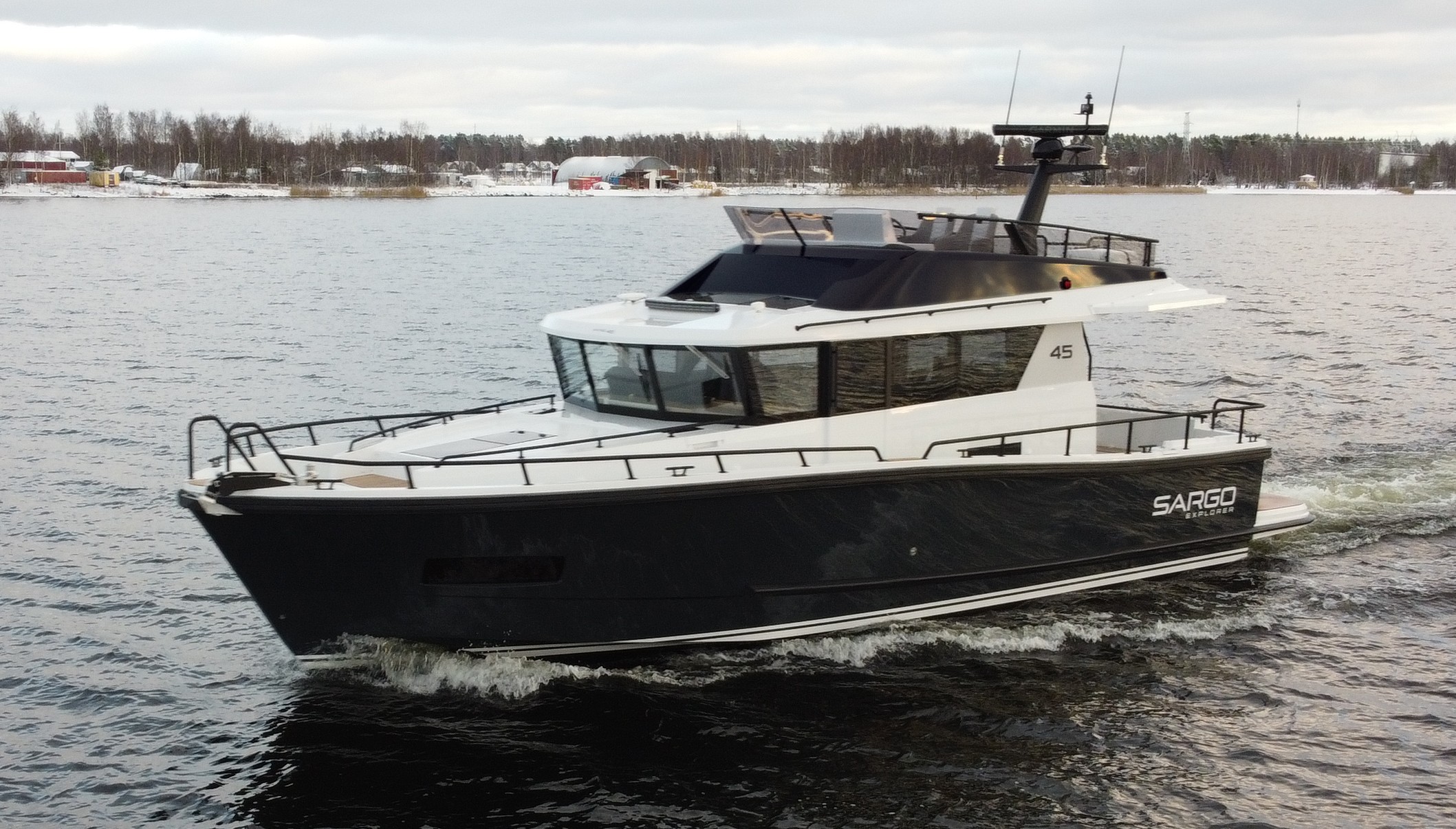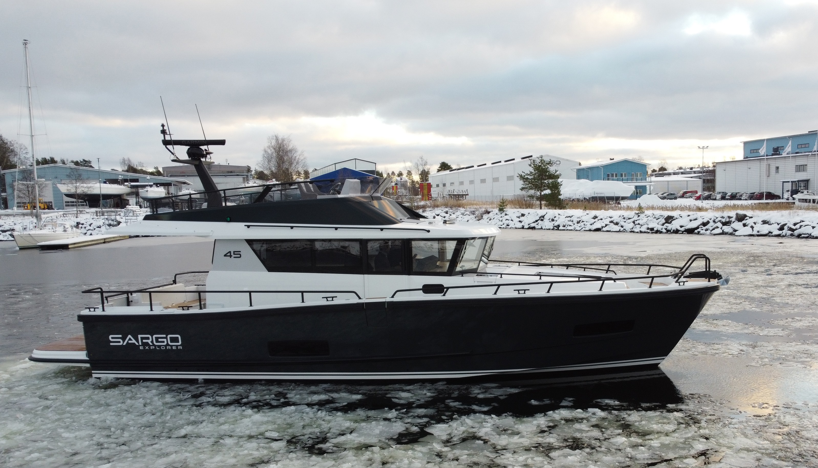 Sargo 45 Flybridge får offentlig debut på boot-udstillingen i Düsseldorf i januar, hvor den danske importør DBC Marine fra Skovshoved viser modellen frem og giver publikum mulighed for at opleve flybridgeløsningen i praksis. Den finske producent bygger videre på Sargo 45 fra 2023.