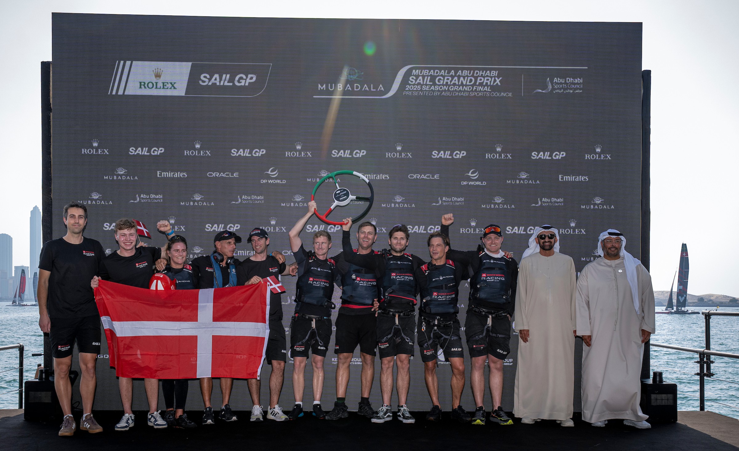 ROCKWOOL Racing og Nicolai Sehested og gaster sikrede sig søndag holdets første eventsejr nogensinde i SailGP, da de dominerede feltet i Abu Dhabi og sluttede med et forspring på hele 15 point efter seks sejladser. Emirates GBR vandt hele sæsonen, det gav ikke mindre end 2,4 mio. usd.