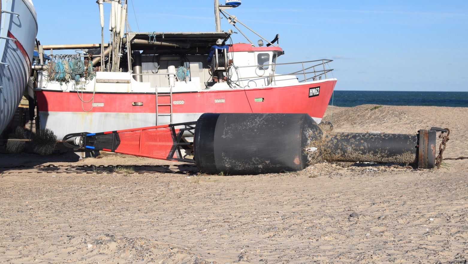"Vi stødte på bøjen 14 sømil ude i Nordsøen og tog den på slæb ind til stranden, hvor vi trak den op," fortæller Jesper Olsen, der sammen med sin bror Bo ejer kutteren HM94-E. M. Olsen.