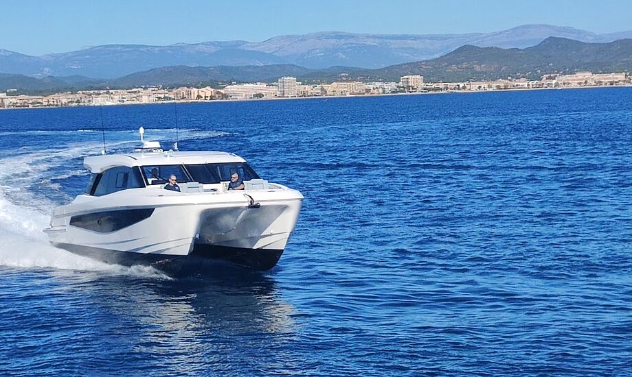 I Sydfrankrig var det var en flot solskinsdag og let vind i oktobar da motorbaadsnyt.dk testede den kinesiske motorkatamaran, der er kraftigt inspireret af amerikansk design.