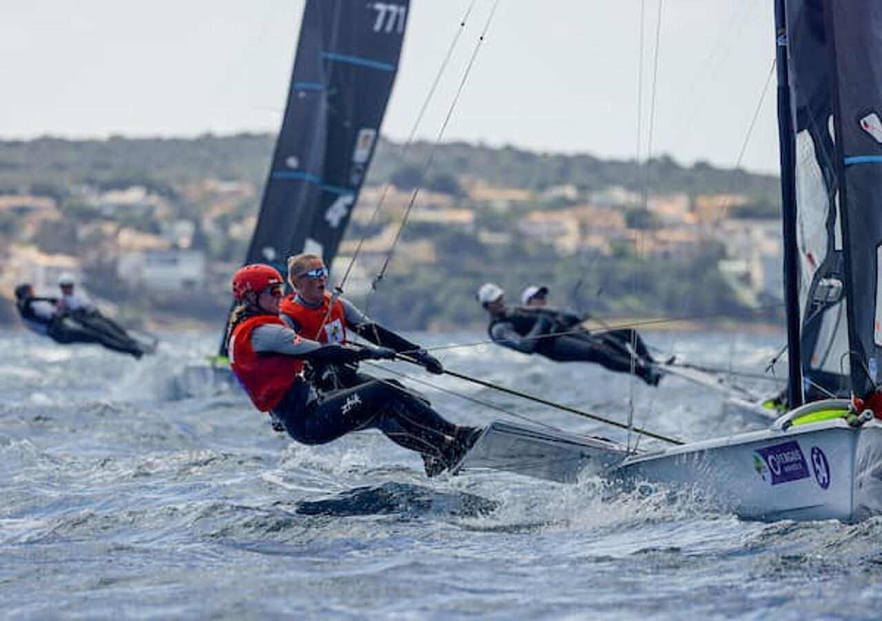 I 49erFX er Jena Mai Seaton og Christina Andersen fra Hellerup Sejlklub er klar til medal race fra en samlet sjetteplads.