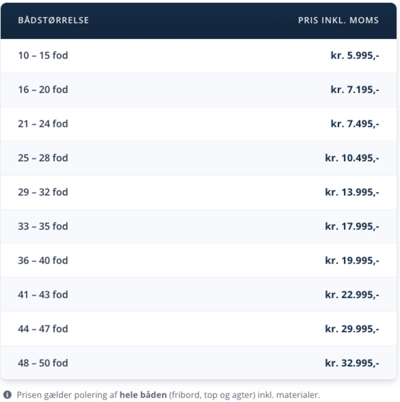 Pris afhænger af bådens størrelse