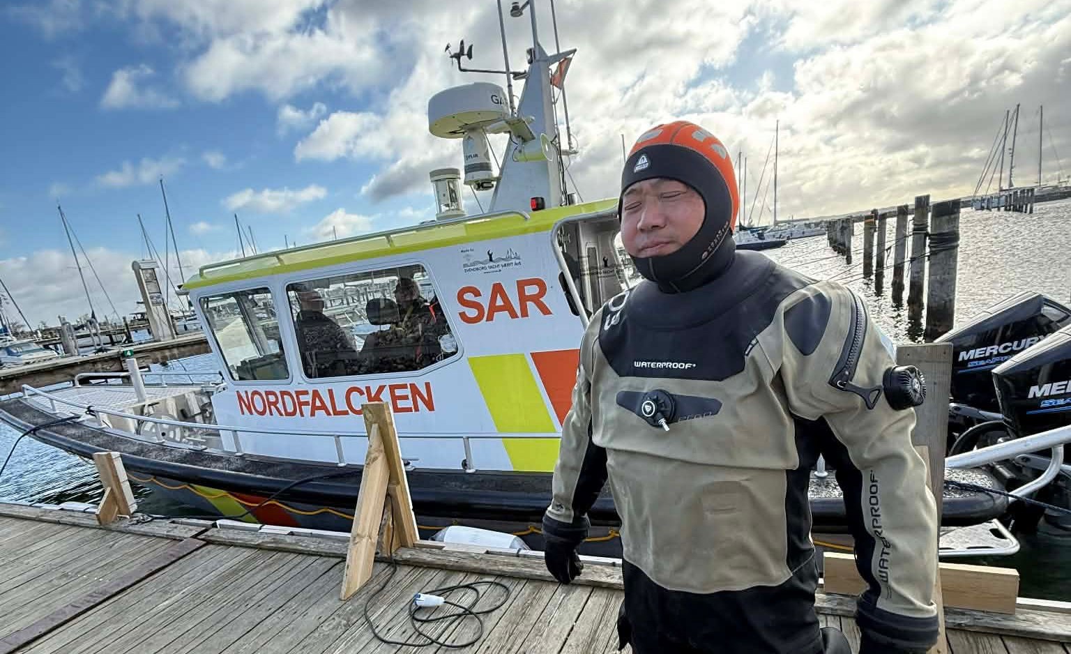 Hos de frivillige reddere fra Nordfalcken gik det stærkt. Chris og Klaus F. meldte sig klar inden for et minut, og kort efter afgik redningsbåden Nordfalcken 3 mod havnen, skriver på de frivillige reddere på deres facebook-side.