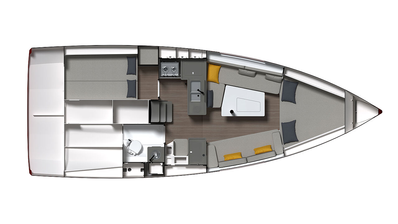 Layoutet er udviklet med fokus på langtur og effektiv sejlads. Samtidig er cockpittet designet, så det også fungerer som opholdsrum i havn eller ved anker.