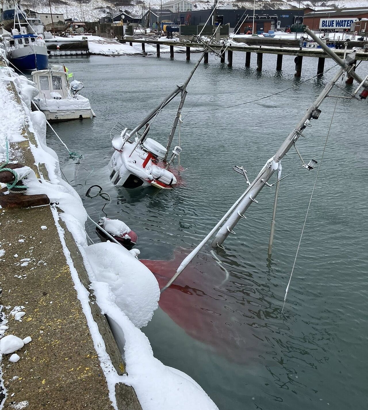 Redningsmandskabet kørte hurtigt afsted i stationens Unimog med lænsepumper ombord, men da de nåede frem, stod det klart, at der ikke var noget at gøre for det havarerede fartøj. Snefygningen havde tynget det så meget ned, at det allerede var sunket.