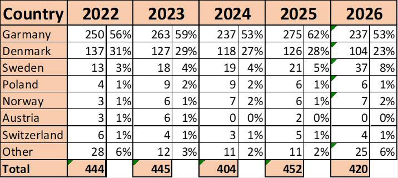 - Men i løbet af natten blev der i alt solgt 420 billetter, forklarer Henrik V. Jørgensen, der også har lavet statistik over, hvilke bådtyper der stiller til start. Men her til morgen er tallet nu oppe på 443 solgte startnumre.