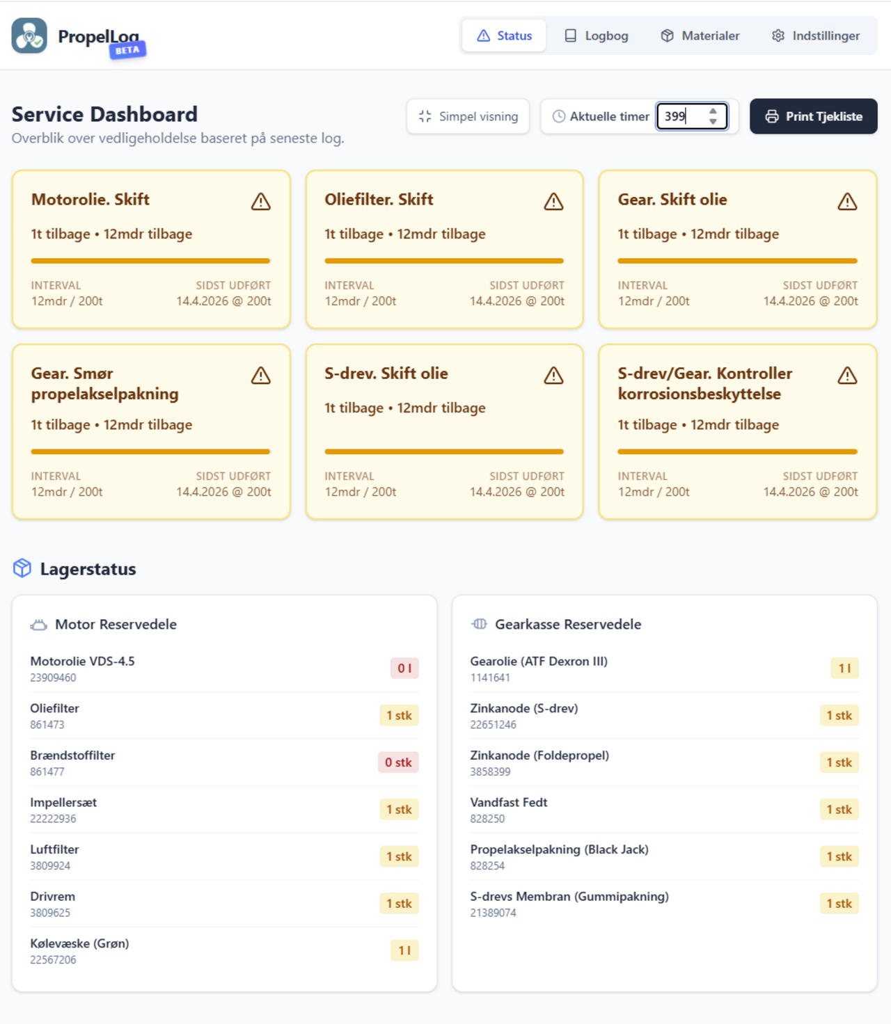 - Lagerstyring af reservedele som filtre, olie og impellere