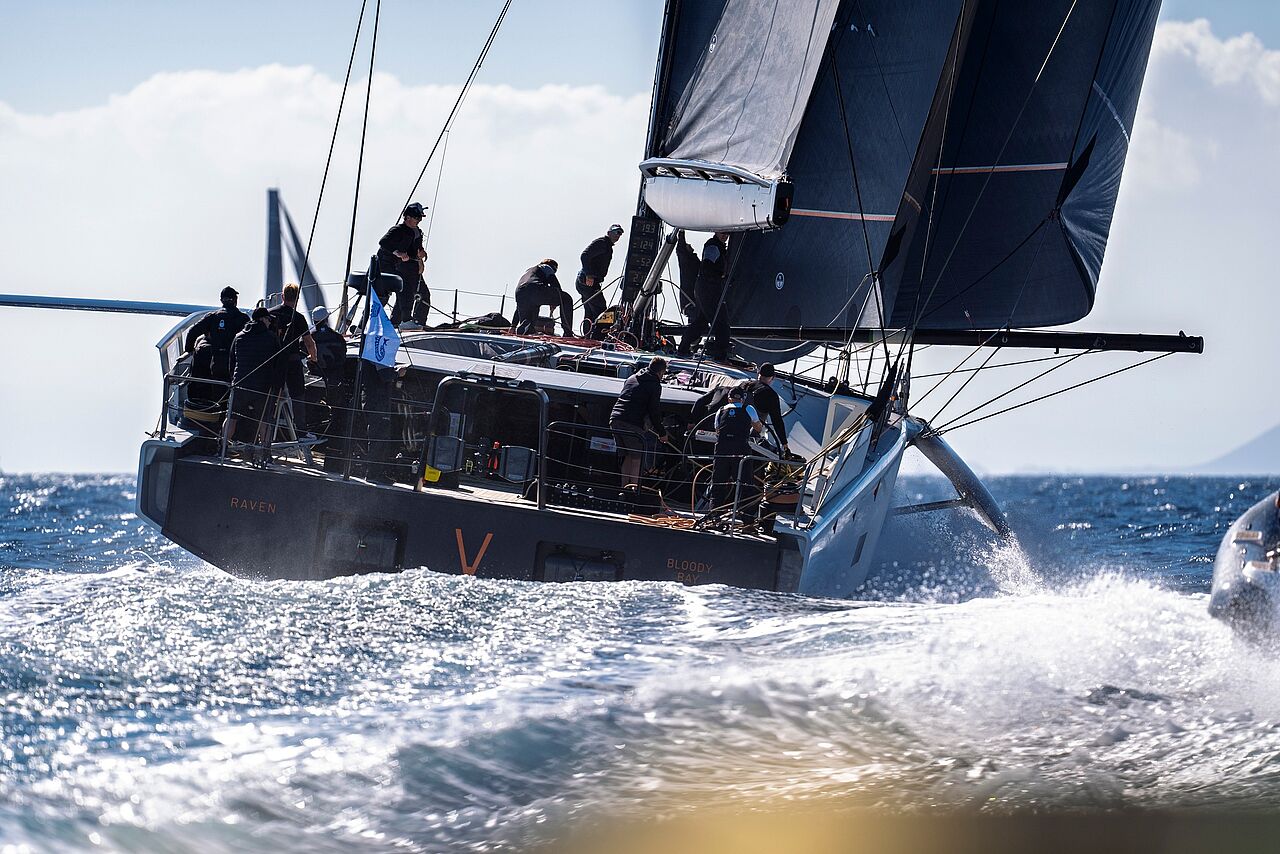 Ud for Marina Rubicón på Lanzarote blev starten i RORC Transatlantic Race afviklet i stabile forhold, men allerede få sømil efter var det tydeligt, at Raven ikke blot deltager for syns skyld. Yachten accelererede markant, når foilsene tog belastning, og den gled hurtigt fri af den tætte starttrafik.
