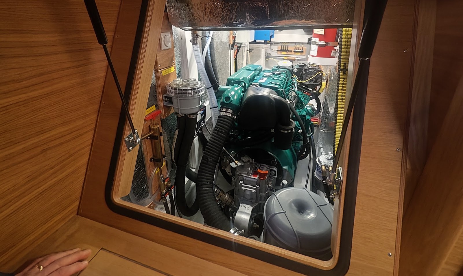 Til gengæld får man en byggekvalitet, der ligger over gennemsnittet: håndoplagt Divinycell-sandwich, lamineret skrog/dæk-samling og massivt snedkerarbejde.