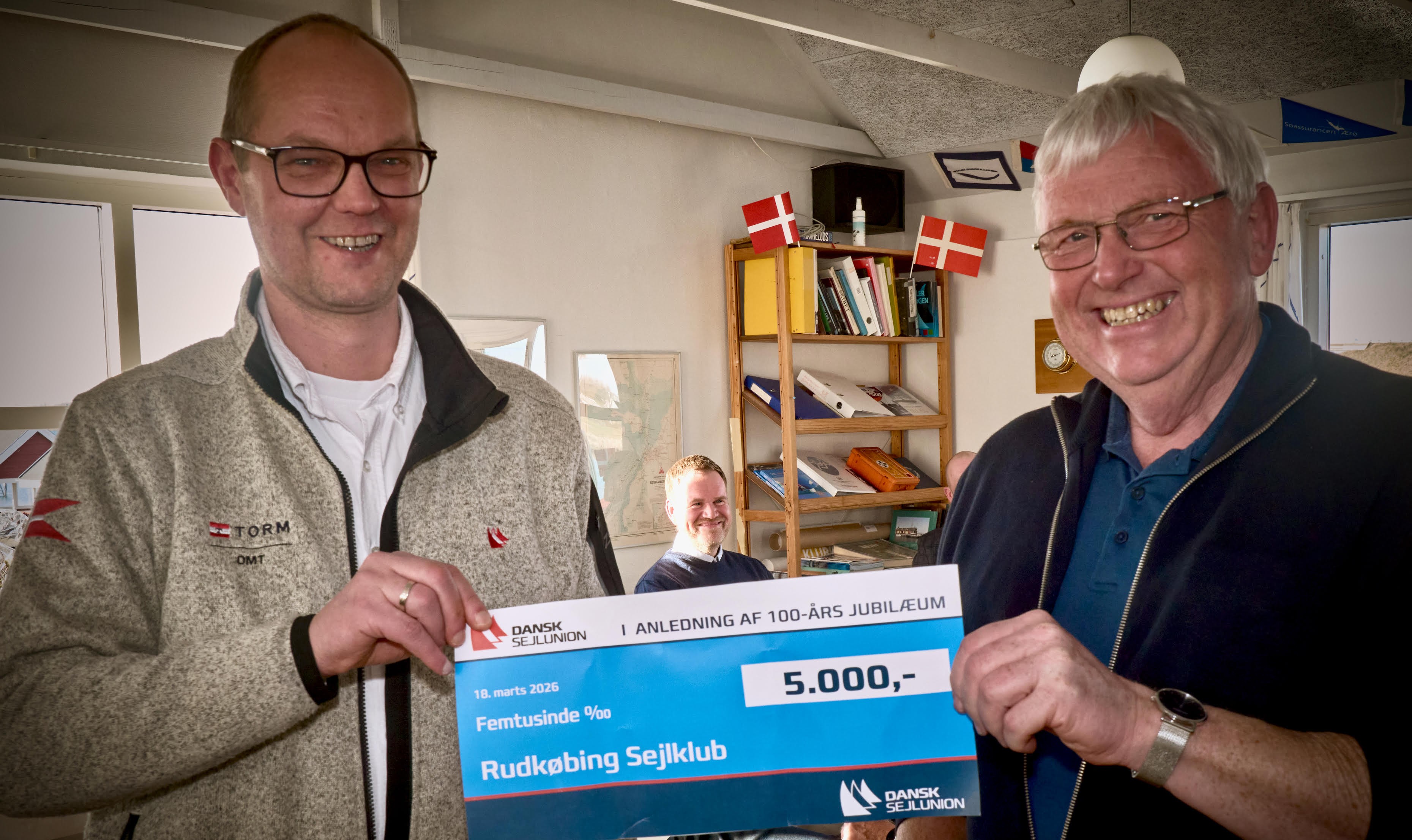 Fra Dansk Sejlunion talte Henrik Tang Kristensen, klubkonsulent på Sjælland, Fyn og øer. Konsulenten sluttede med at overrække formand Arne Nielsen sejlunionens jubilæums-check på 5000 kr.
