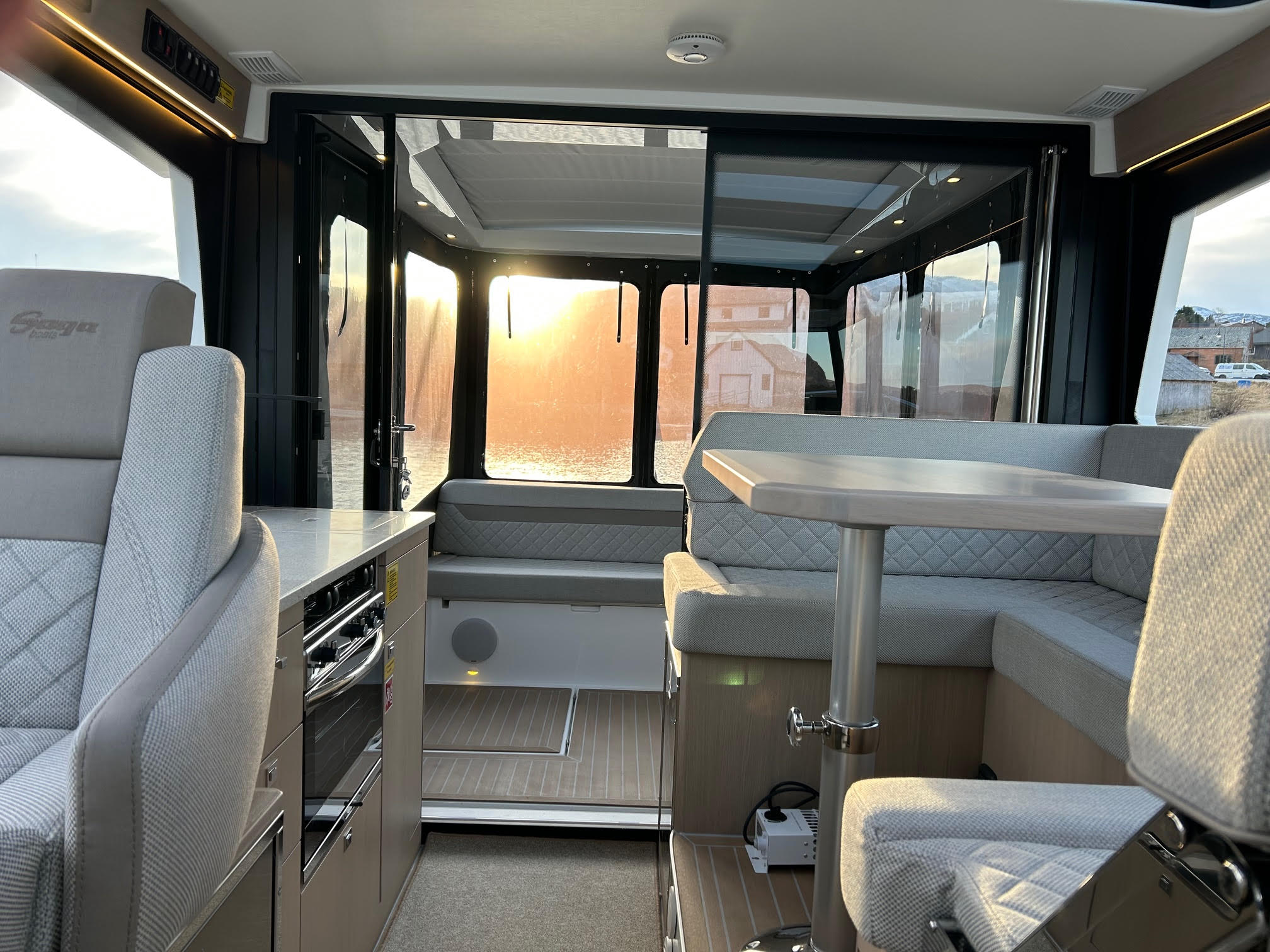 Båden er desuden konstrueret til brug gennem en stor del af sæsonen med fokus på komfort og anvendelighed. Saga Boats har i øvrigt produceret både siden 1960.