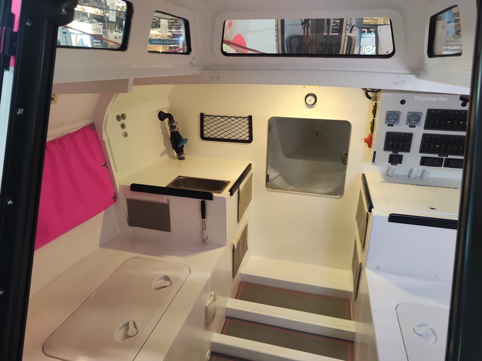 Livet om bord bliver minimalistisk. Ombord er to autopilotsystemer: en klassisk rorpindspilot og et vindror.