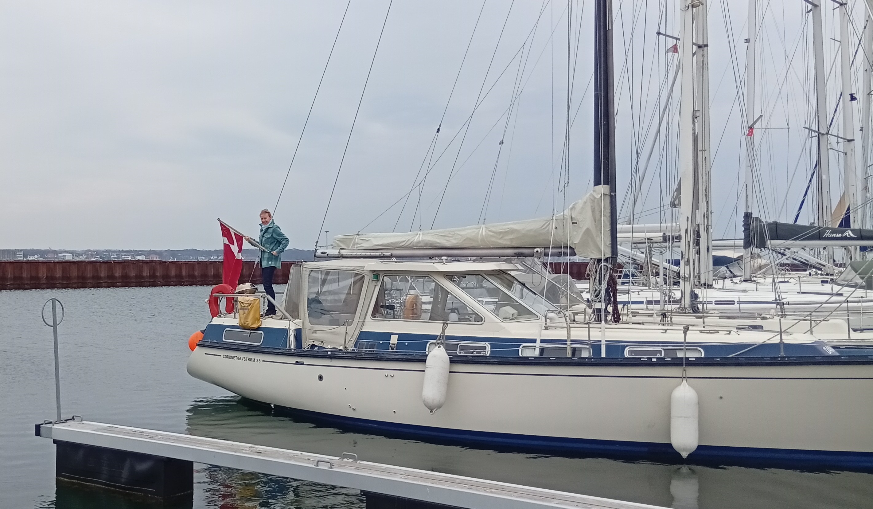 Så det var med stor glæde og lettelse at vi svingede ind i Skovshoved Havn og kiggede på den bro, hvor vi skal ligge, når vi skal giftes om et par måneder. Det skal selvfølgelig foregå på båden, og middagen skal spises på restauranten på havnen.