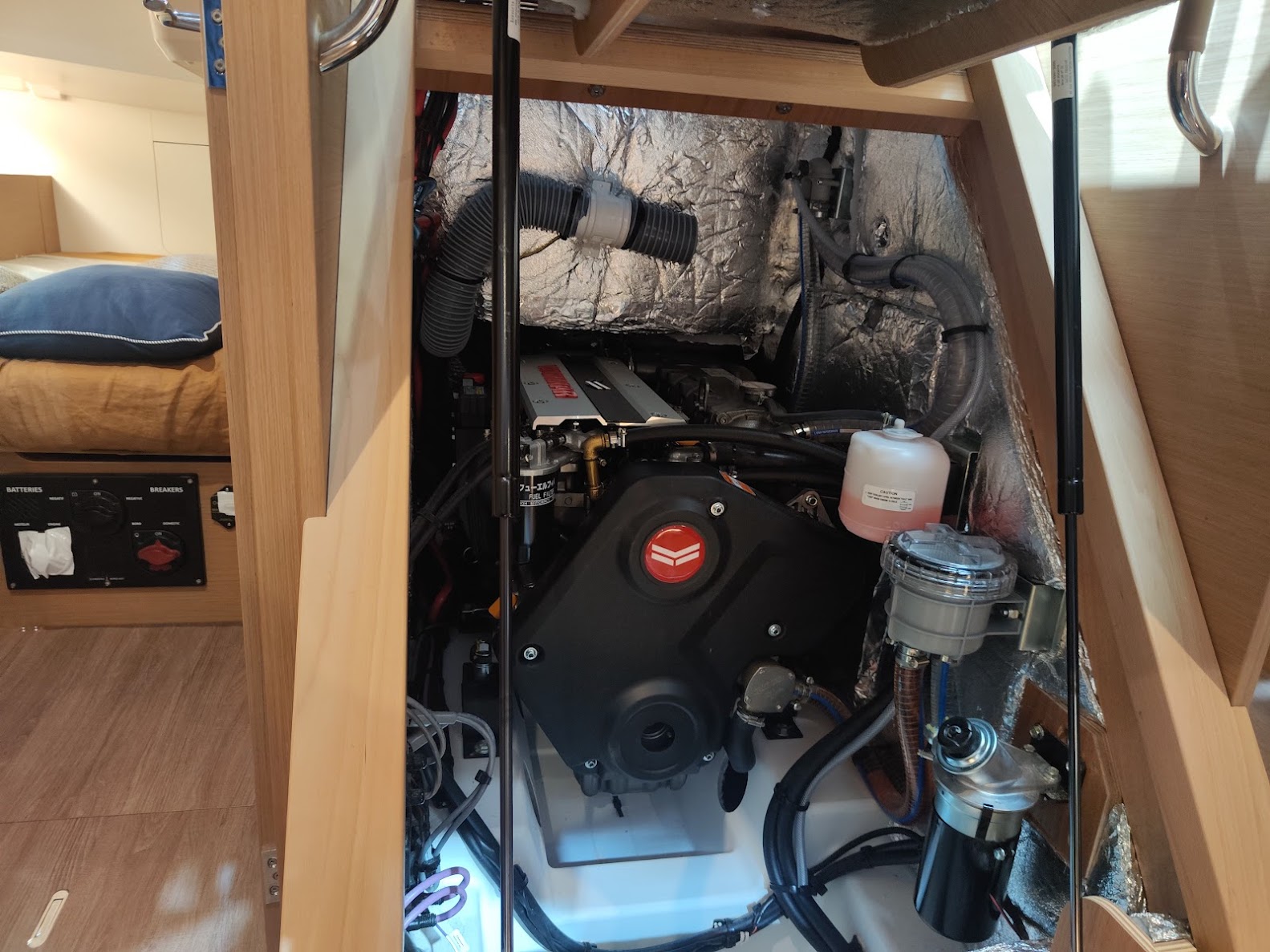 Standardmotoren er en 57 hk Yanmar, med mulighed for opgradering til 80 hk som kommer med elektrisk styring. Kølen fås i både standard- og lav version, og riggen kan vælges i flere konfigurationer afhængigt af ambitionsniveau.