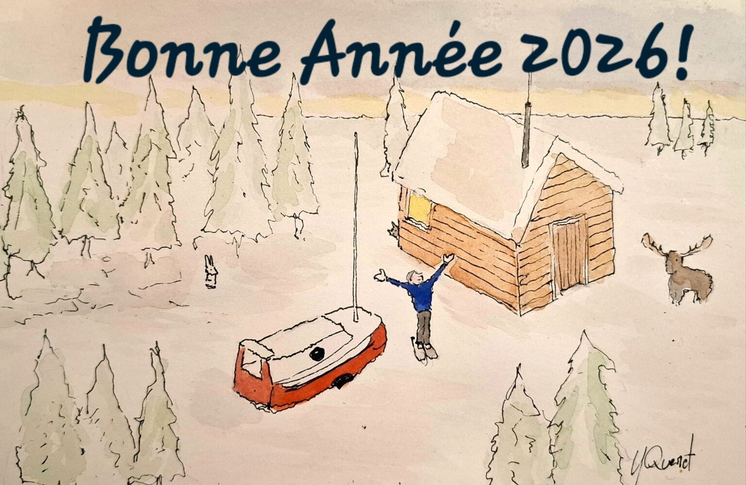Den 57-årige franske solosejler Yann Quenet er igen på vej. Efter en vinter langt fra havet i den canadiske ødemark i en skovhytte har han gravet sin blot 4,20 meter lange båd Baluchon fri af sneen og genoptager sit usædvanlige forsøg på at sejle jorden rundt.