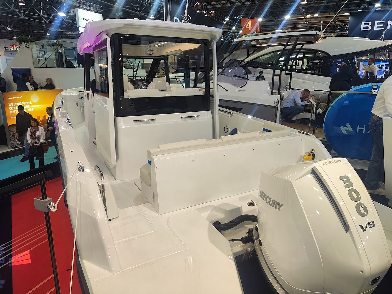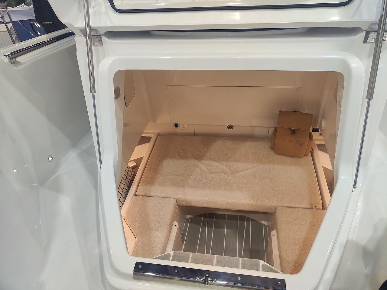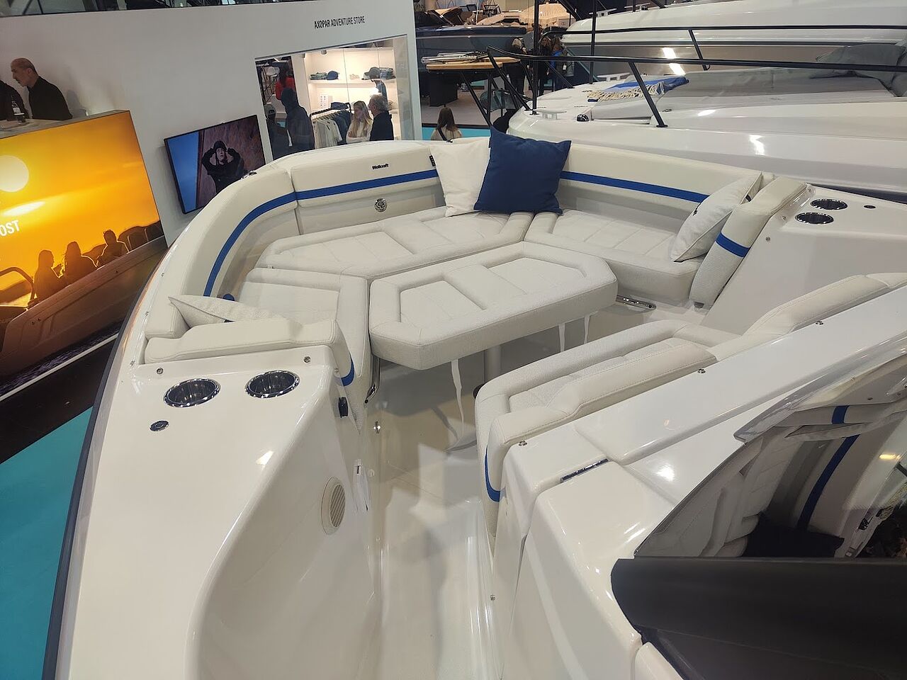 Her minder konceptet meget om Axopars modulære tankegang. Forskellen ligger i detaljerne. Hvor Axopar ofte fremstår minimalistisk og designstram, har Wellcraft valgt en mere udpræget offshore-æstetik med højere fribord, kraftigere håndlister og et mere lukket agterskib.
