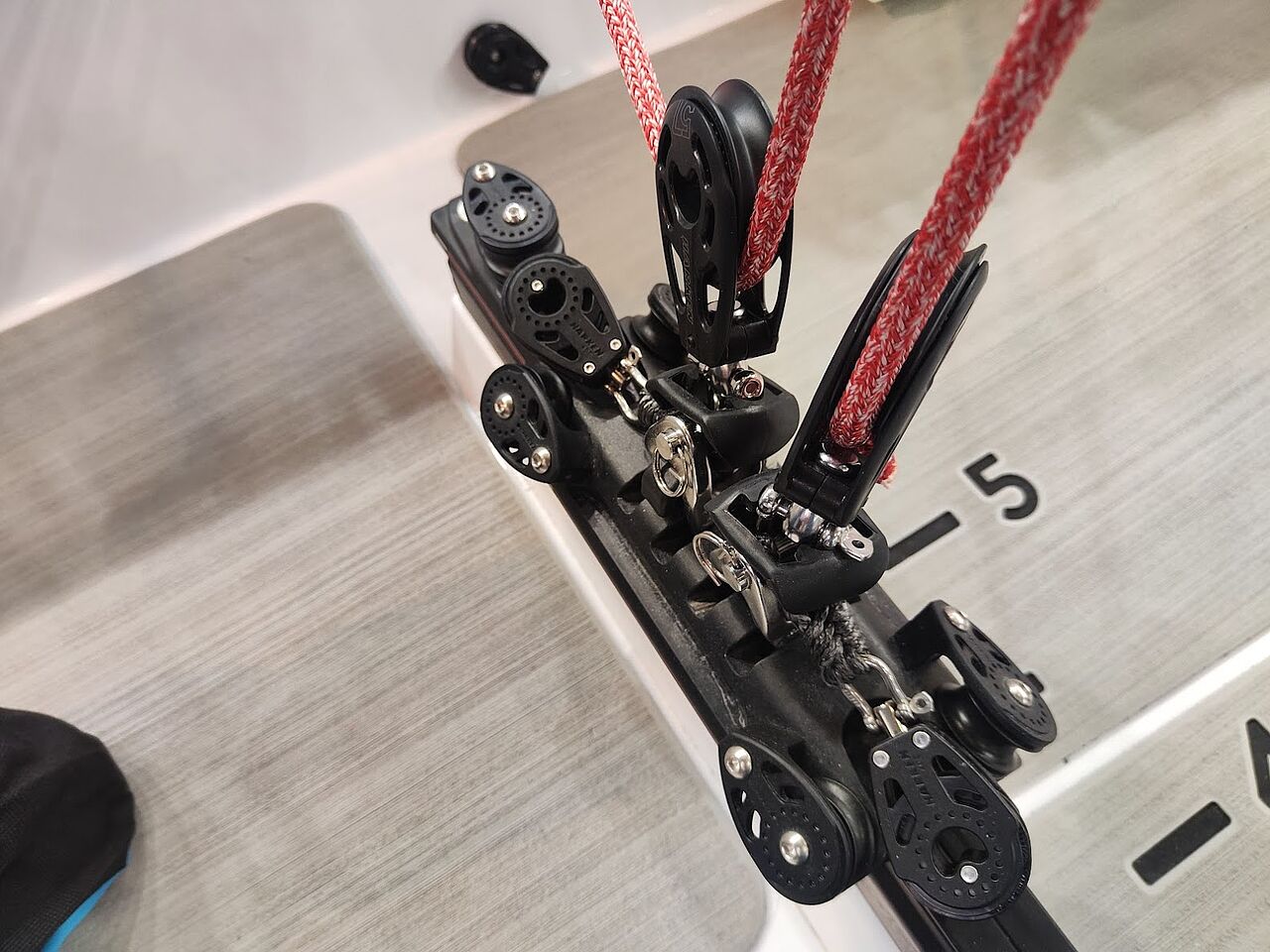 Standardudgavens dobbeltror er erstattet af en enkelt rorpind, der både sparer vægt og giver mere direkte styrefornemmelse – især værdsat af kapsejlere og solo-sejlere.