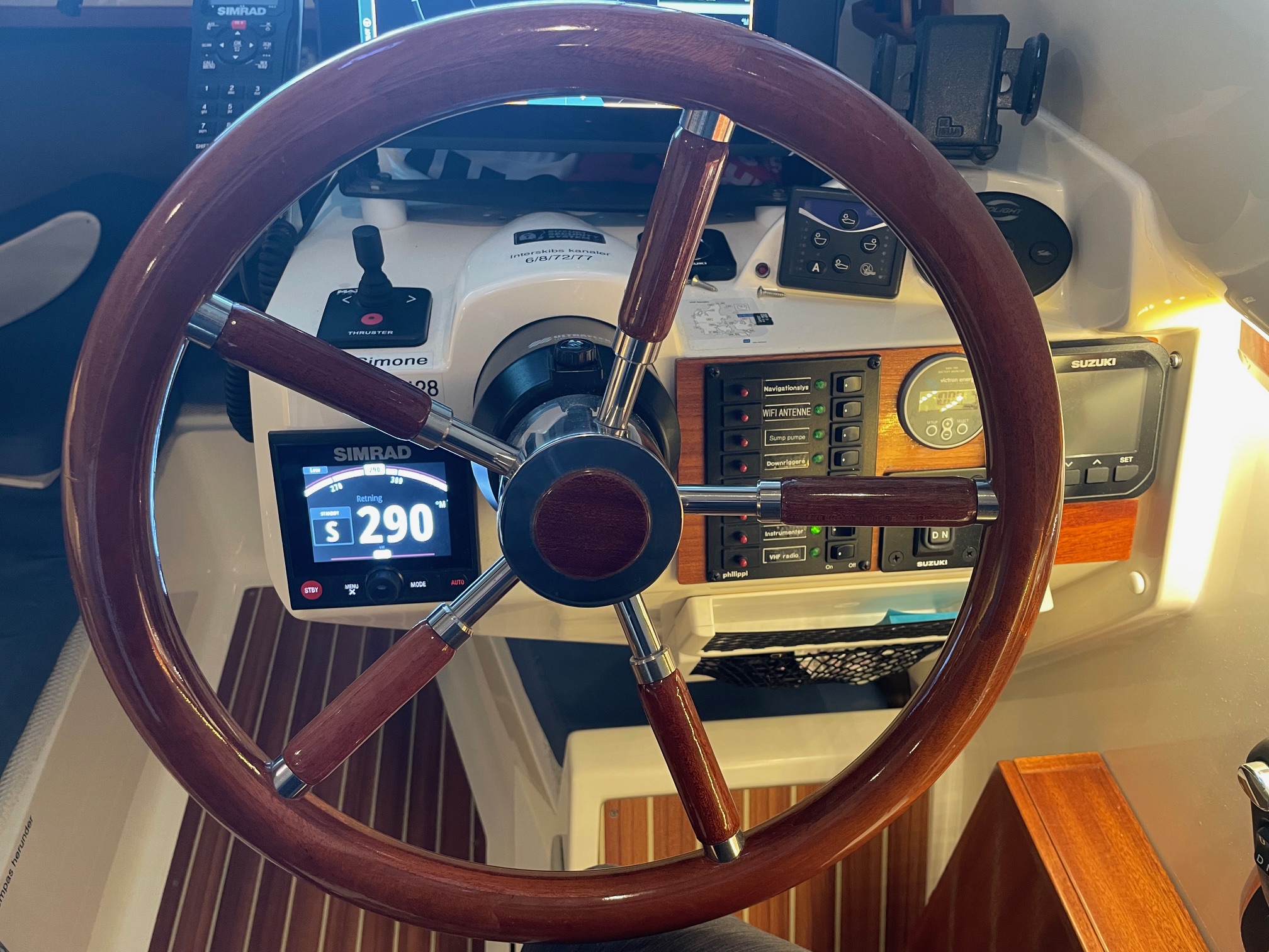 Jeg håndstyrer kun båden under havnemanøvrer. Så snart jeg forlader havnen, aktiverer jeg autopiloten. Den styrer ganske enkelt bedre, end jeg selv kan, og det er uden tvivl den største komfortforbedring, jeg har ombord.