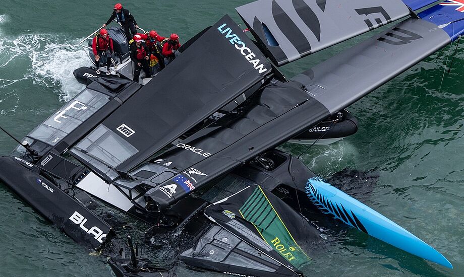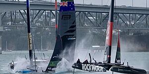 Det blev til en 8. plads efter tekniske problemer hos ROCKWOOL Racings weekend ved SailGP-stævnet i New Zealand, mens en alvorlig kollision mellem to konkurrenter satte sikkerheden i fokus i hårde vindforhold. Se dramatisk kollision og få video ekspert-kommentar.